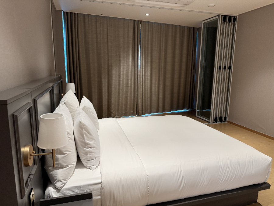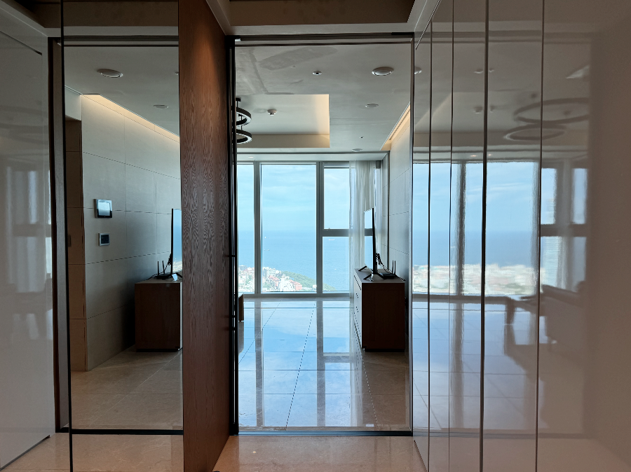 아고다를 통해 엘시티 레지던스 오션 주니어 스위트 50G, 51H를 예약했는데.. 저희가 배정받은 곳은 55F 오션 스위트였습니다~ 사실.. 숙박 당시에도 몰랐는데 포스팅하려고 찾아보니 우리 숙소가 오션 스위트였어요 :-) 오션 스위트는 오션 주니어 스위트와 뷰는 미포항뷰로 같고 큰 차이는 없지만 오션 주니어 스위트보다 살짝 더 넓은 것 같습니다. 숙박 당시에도 오아~ 오아~ 하면서 좋다~ 좋다 했는데 룸이 업그레이드됐다니 지금 다시 또 기부니가 좋네요~~~ 아마도 저희 숙박인원이 많아서 쬐금 더 넓은 곳으로 배정해 주신 듯해요~