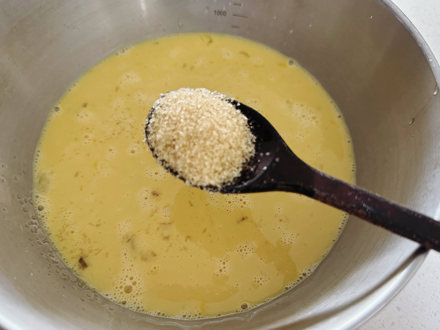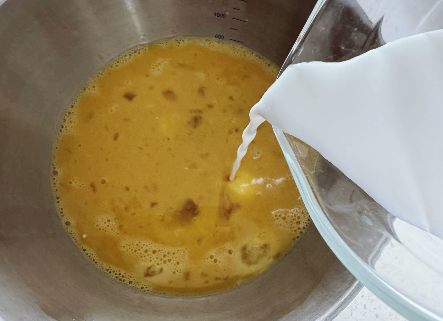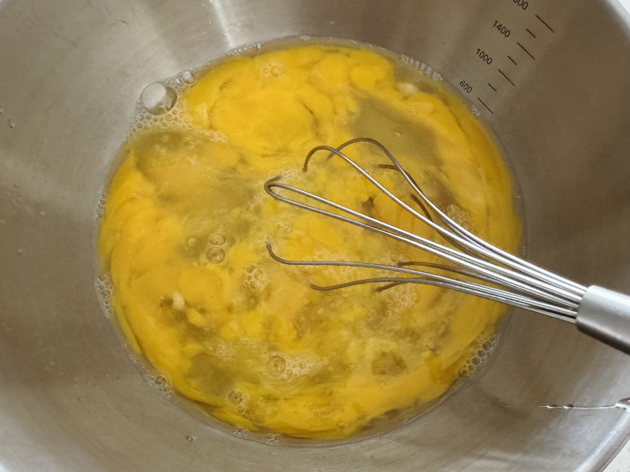 1. 달걀 8개를 볼에 넣고 거품기로 저어 주세요.