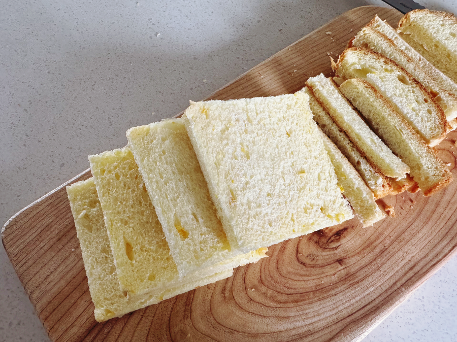 집에 있던 옥수수 식빵 테두리를 잘라 모양을 이쁘게 만들어 주고~