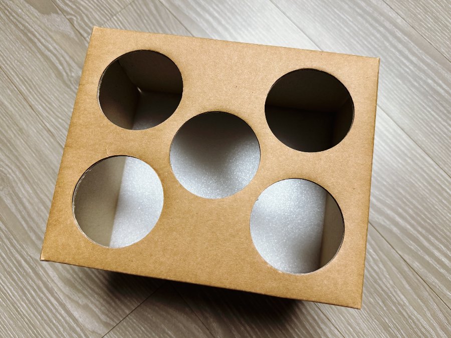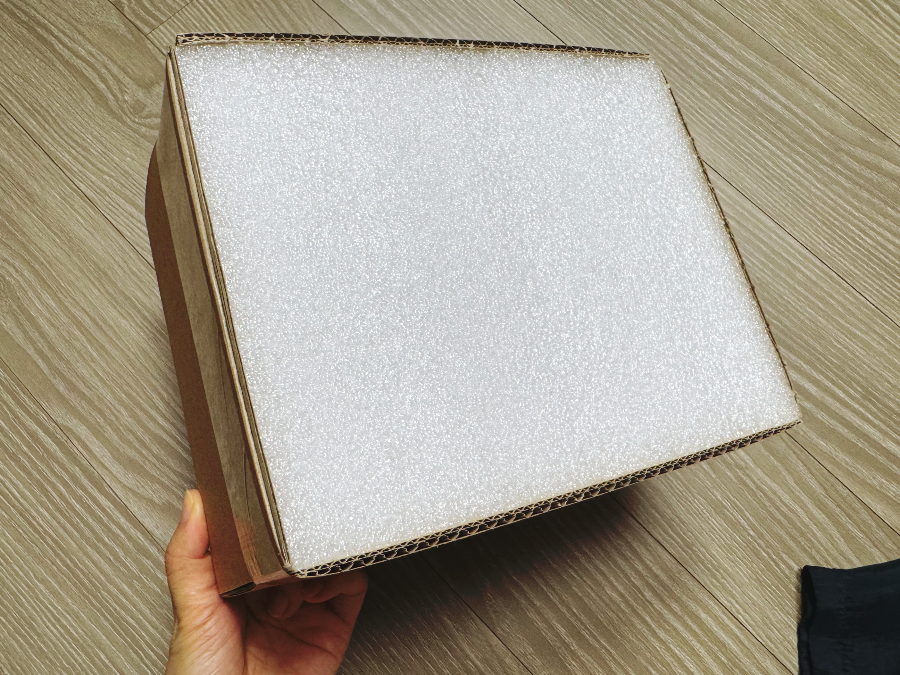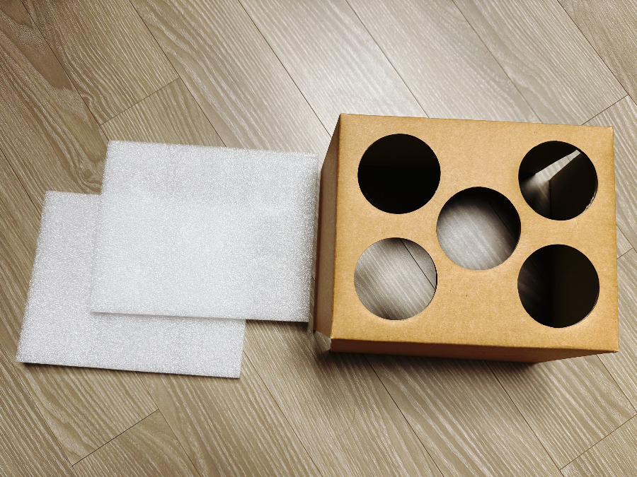 원래는 겉 박스를 구멍이 뚫린 속박스 높이까지 가로로 잘라주기만 하면 되는데요. 이번에는 겉박스를 사용할 일이 있어 안에 들어있는 필터 고정용 속박스로만 만들어 보았습니다~ 준비물은 구멍이 뚫린 필터 고정 속박스와 상자에 들어있던 충격방지 포장재, 테이프입니다.