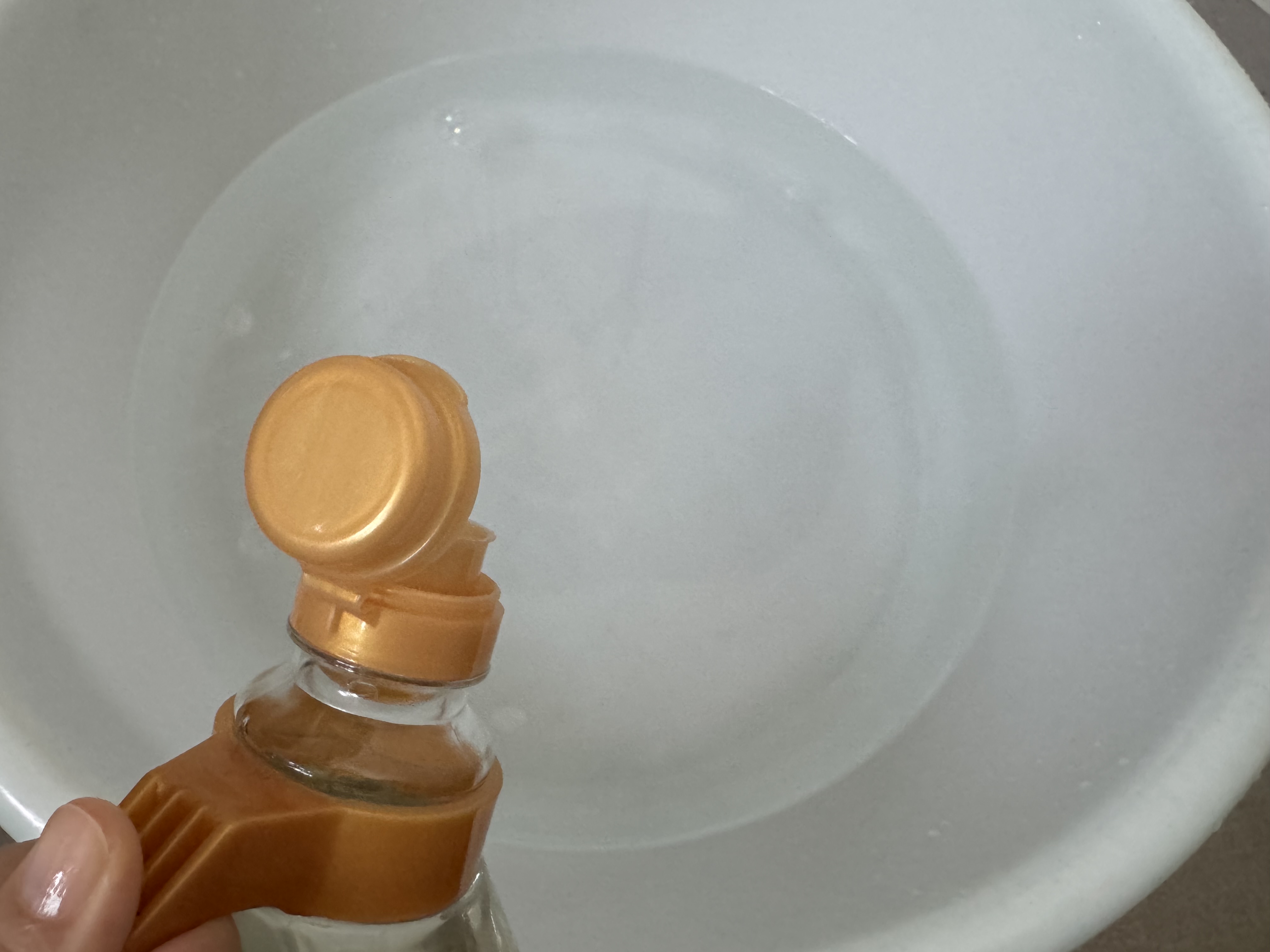 물세탁용 가죽가방 세탁세제가 있어 구매할까 하다가 잘 못 되면 버리기로 했으니 집에 있는 걸로 세탁하기로 했습니다. 시중에서 파는 가죽가방 세제는 약산성 제품입니다. 그래서 그런지 중성세제와 식초를 약간 넣고 세탁하면 된다고 해요~ 미지근한 물에 울세제를 넣고 식초를 약간 떨어뜨려 잘 섞어 준 다음 가방을 물속에 퐁당~ 담가주었습니다.