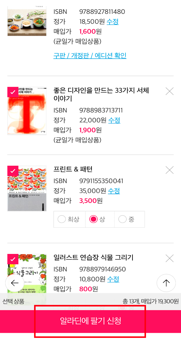 <알라딘에 팔기 신청>