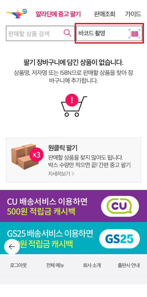 알라딘 앱에서 바코드 찍고 매입 신청하기