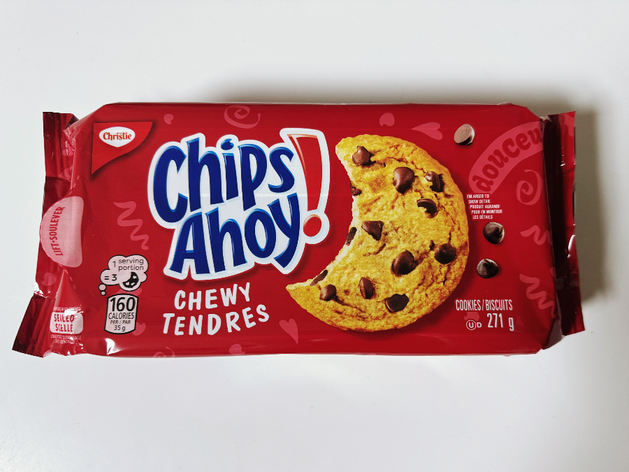칩스아호이는 여러 가지 맛이 있는데요. 빨간색 패키지가 강렬한 이 칩스아호이는 Chewy tenders라고 적혀있네요~  우리나라 초코칩쿠키인 촉촉한 초코칩처럼 촉촉하고 부드러운 맛입니다.