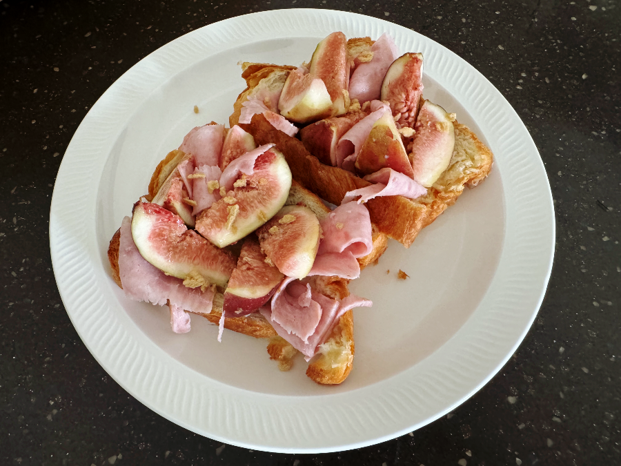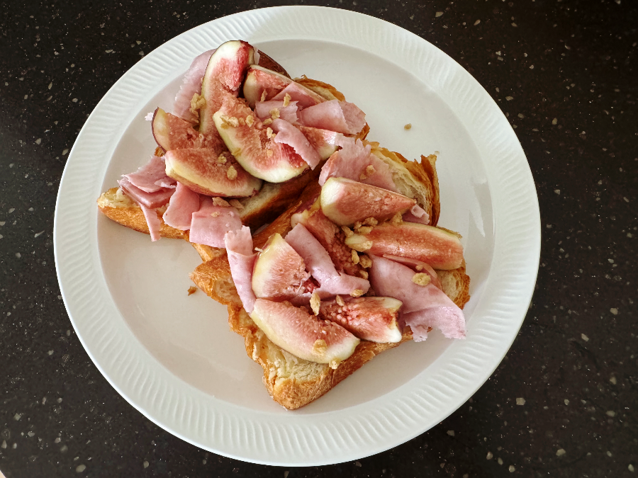 이건 데니쉬 식빵 위에 햄과 무화과를 썰어서 올린 초간단 오픈 샌드위치입니다. 무화과가 달지 않고 밍밍하길래 메이플 크런치를 솔솔~솔 뿌려줬는데.. 맛없던 무화과가 달콤한 무화과로 되살아났답니다. 메이플 크런치는 칼로리가 설탕과 비슷해서 너무 많이 먹으면 안 되지만 이렇게 솔랑솔랑 뿌려서 먹으면 얼마나 맛있게요~~
