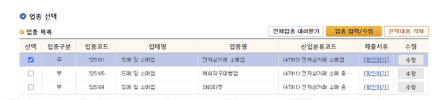 전자상거래 소매업과 해외직구대행을 둘 다 하려면 주 업종과 부업종으로 같이 신고하면 되고 업종 정정은 사업자 등록 신고처럼 홈택스에서 쉽게 정정할 수 있습니다.