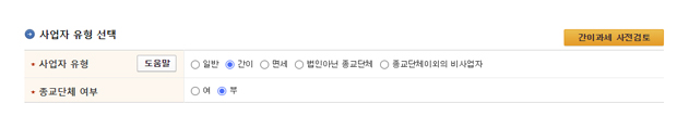 업종을 선택했으면 이제 사업자 유형을 선택하면 됩니다.