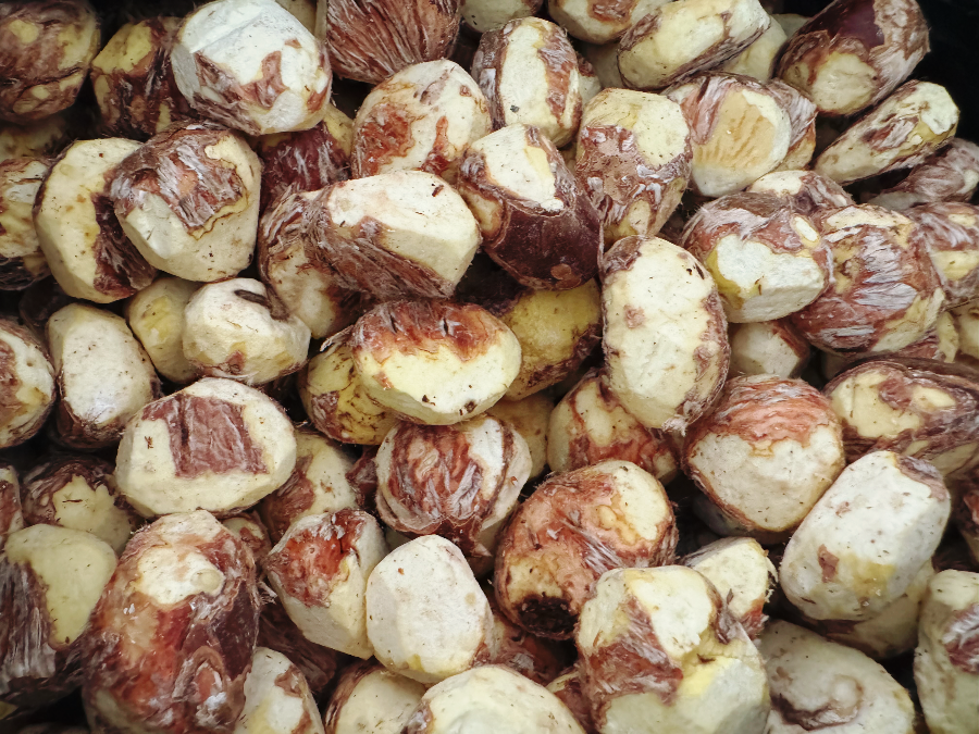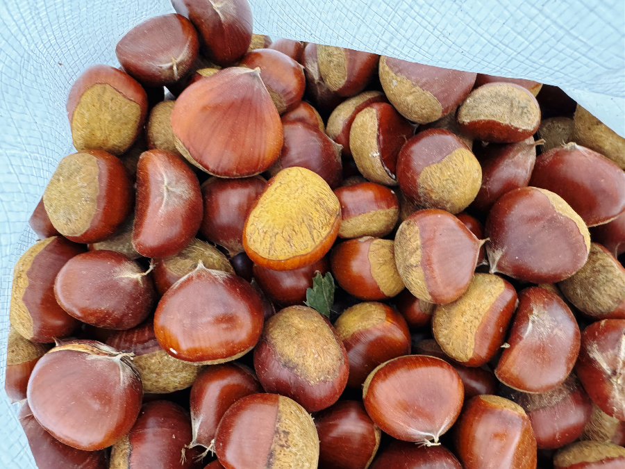잠시 기다리는 동안 금방 깎여진 밤입니다. 이야~ 딱딱한 껍질이 싹 제거됐습니다. 밤 크기가 제각각이고 기계가 깎는 것이다 보니 완전히 깨끗하게 깎이지는 않는데요. 이 정도만 해도 너무 감사하답니다. 손으로 까는 건 너무 힘들거든요...