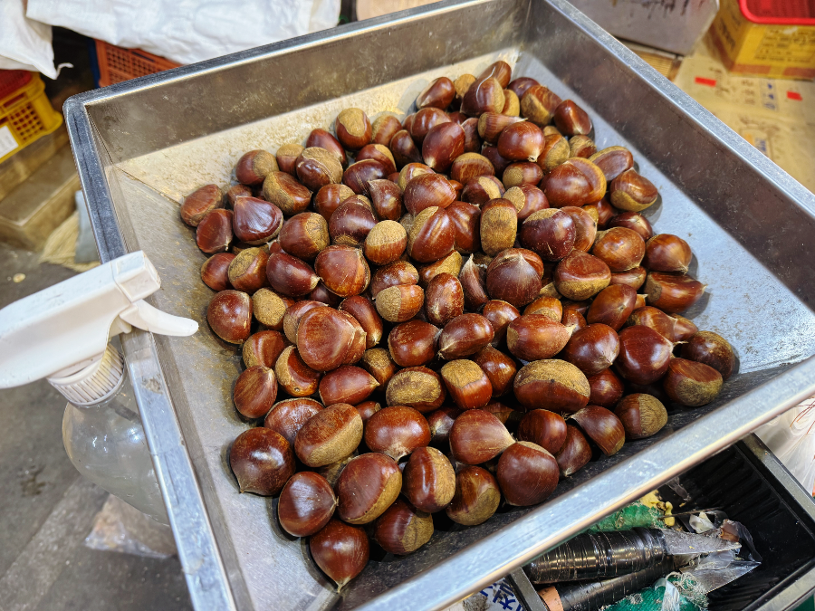 사장님께서 친절하게 밤 보관법도 알려주셨어요. 소금물에 조금 담가놨다가 속껍질을 잘 깎아서 냉동보관한 후 꺼내먹으라고 알려주셨어요. 냉동실에서 꺼낸 후에는 녹이지 말고 바로 조리해야 밤이 흐물흐물해지지 않는다고 해요~ 인천에서 밤 깎아주는 곳 찾으시는 분들~ 부평시장으로 가세요! 온화한 미소의 친절한 사장님이 계신 남성상회로요~