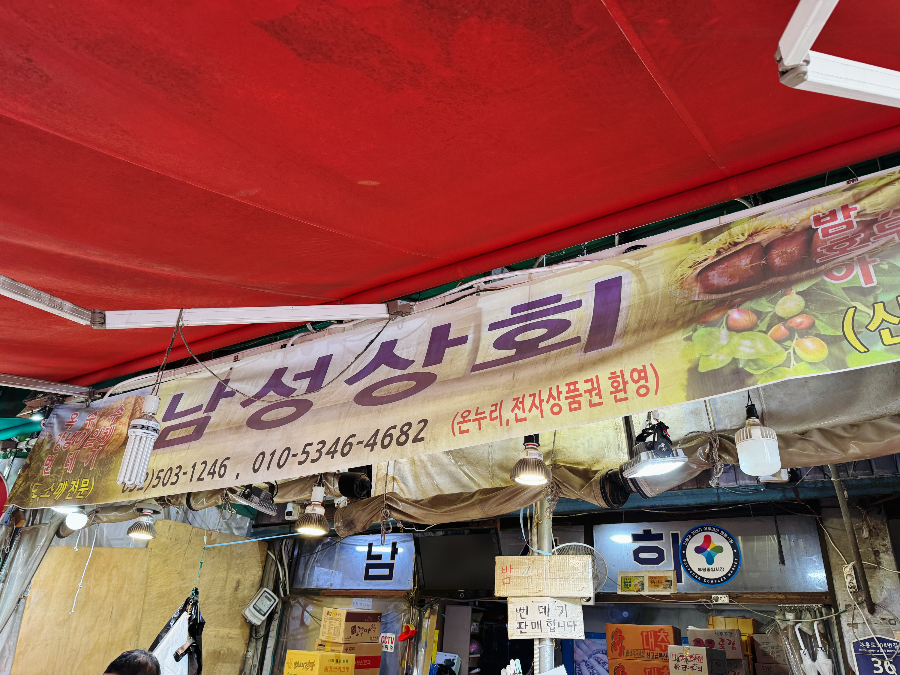 인천 부평시장에서 밤 깎아주는 이곳은 남성상회입니다. 부평시장이 크고 복잡해서 찾기 어려울 수도 있는데요. 시장 안에 다이소가 있는데 바로 맞은편입니다. 가성비 우주최강인 원조고향손칼국수와 가깝습니다.