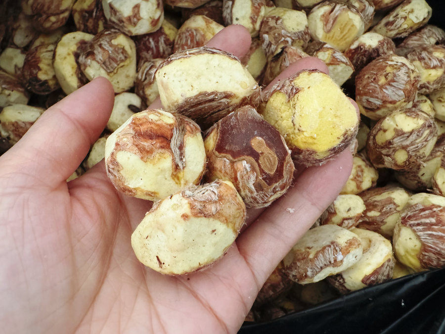 잠시 기다리는 동안 금방 깎여진 밤입니다. 이야~ 딱딱한 껍질이 싹 제거됐습니다. 밤 크기가 제각각이고 기계가 깎는 것이다 보니 완전히 깨끗하게 깎이지는 않는데요. 이 정도만 해도 너무 감사하답니다. 손으로 까는 건 너무 힘들거든요...