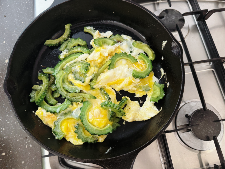 달걀이 적당히 익으면 여주와 함께 섞어서 볶아주면 여주달걀볶음 완성입니다~ 너무 쉽죠? 햄이나 고기, 새우를 같이 넣고 볶아도 맛있답니다.