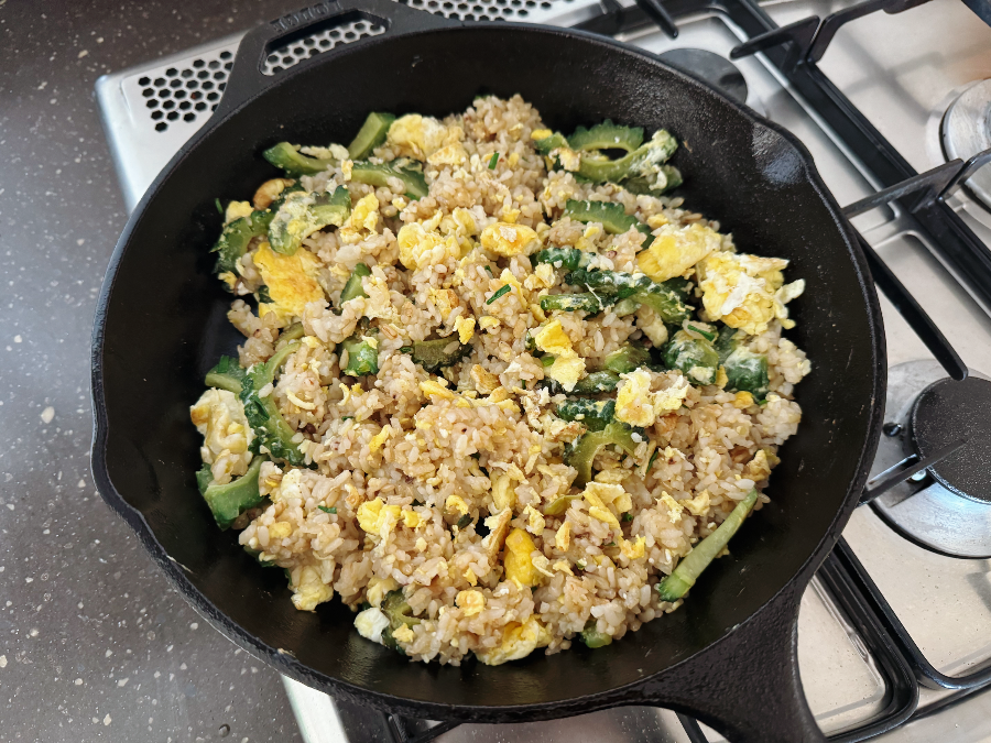 여기에 밥과 굴소스를 조금 넣고 볶아주면 한 끼 식사로 든든한 여주 달걀 볶음밥이 되는데요. 여주의 오독오독 쫀득한 식감과 고소한 달걀이 잘 어울려 정말 맛있답니다~