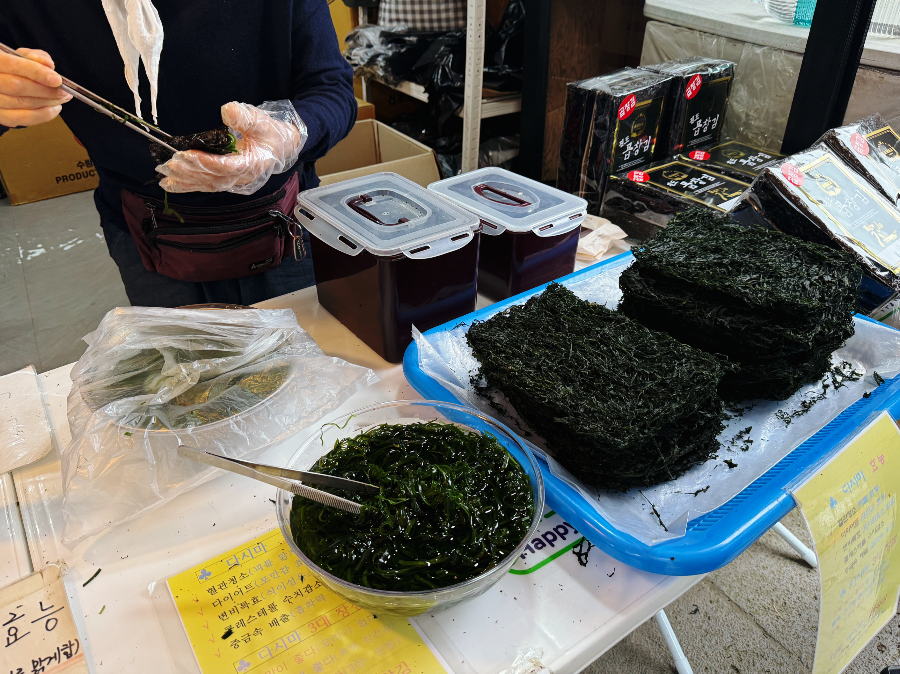 돌김은 아주머니께서 싸주는 김을 먹어보고 샀는데 맛있습니다. 그런데.. 나중에 보니 진도 김이지 뭐예요 >. < 그래도 맛있으니 넘어가는 걸로~~ 먹어보라고 적극적인 시식 마케팅을 하시는데 먹으면 사게 됩니다.. 맛있습니다 :-)