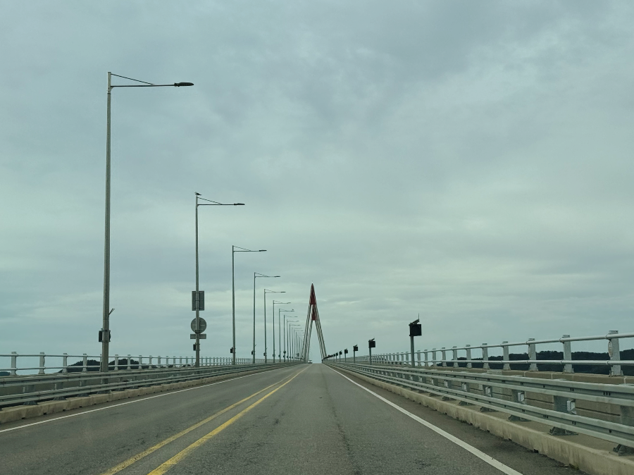 교동도는 강화도에서도 다리를 건너서 가야 하는 곳입니다. 민간인통제구역이기 때문에 다리를 건너기 전 차량번호를 적고 신분증 확인을 한답니다. 신분증은 운전자만 대표로 보여주면 됩니다~ 길 양쪽에 온라인 작성폼으로 연결되는 QR코드가 있던데 아마도 주말에 차가 밀릴 땐 온라인으로 작성이 가능한 것 같습니다.