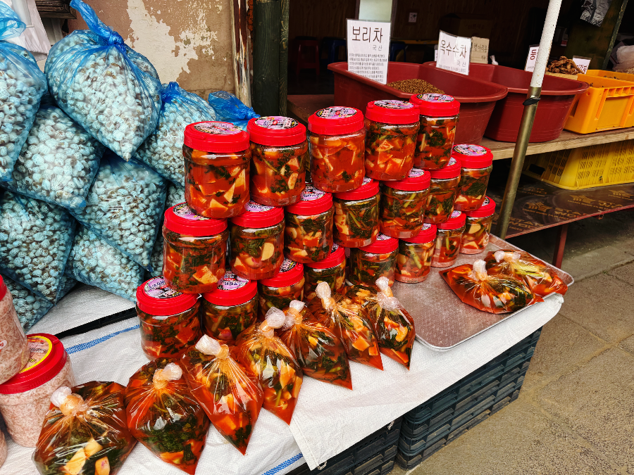 강아지떡은 인기가 많아 만드는데 시간이 걸려서 다음을 기약하고 시장 이곳저곳을 구경하면서 인절미 뻥튀기, 건새우, 순무김치, 돌김을 샀답니다.