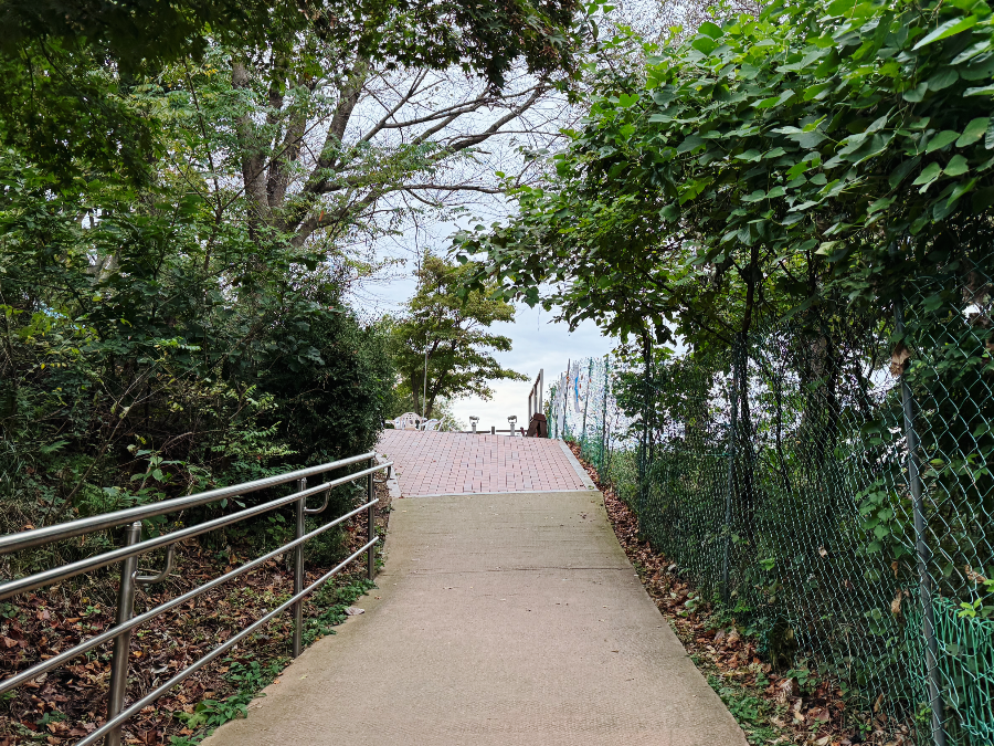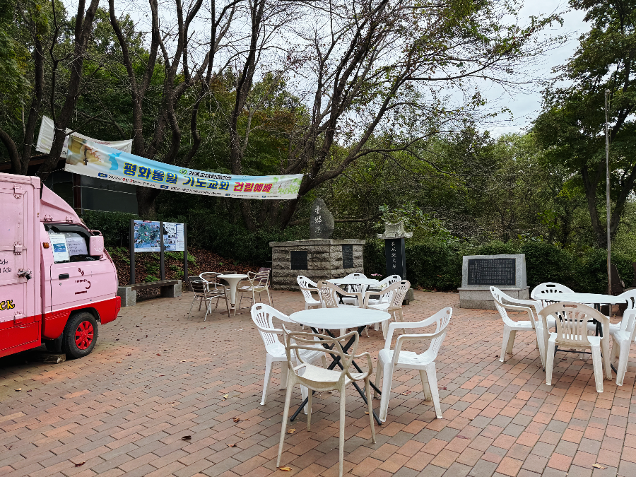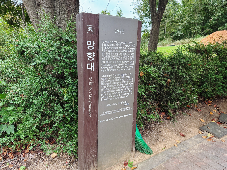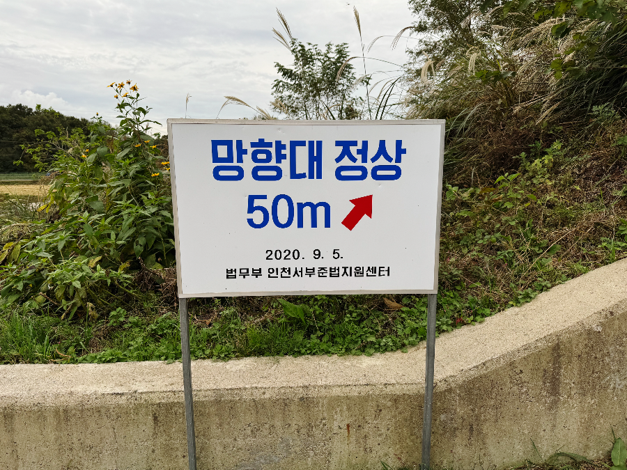 꼬불꼬불 시골 논두렁길을 따라가면 작은 망향대 주차장이 나옵니다. 표지판에 망향대 정상이라고 되어있어 많이 올라가야 하나 했는데 50m라고 되어 있는 거 보이시나요? 계단을 올라가서 조금만 더 가면 바로 망향대가 나온답니다 :-)