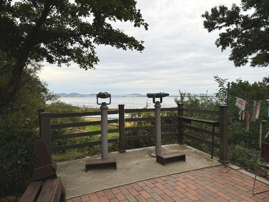 교동도는 강화도에서도 위쪽에 있고 북한과도 아주 가까운 섬인데요. 교동망향대는 교동도에서도 제일 위쪽 끝에 위치해 있답니다. 분단 전에는 왕래가 잦은 곳이었는데 남과 북으로 나눠지면서 고향으로 돌아가지 못한 실향민들이 북쪽을 바라보며 제사를 지내고 마음을 달래는 곳이라고 합니다. 실제로 교동망향대에는 망원경과 비석, 단상이 있답니다.