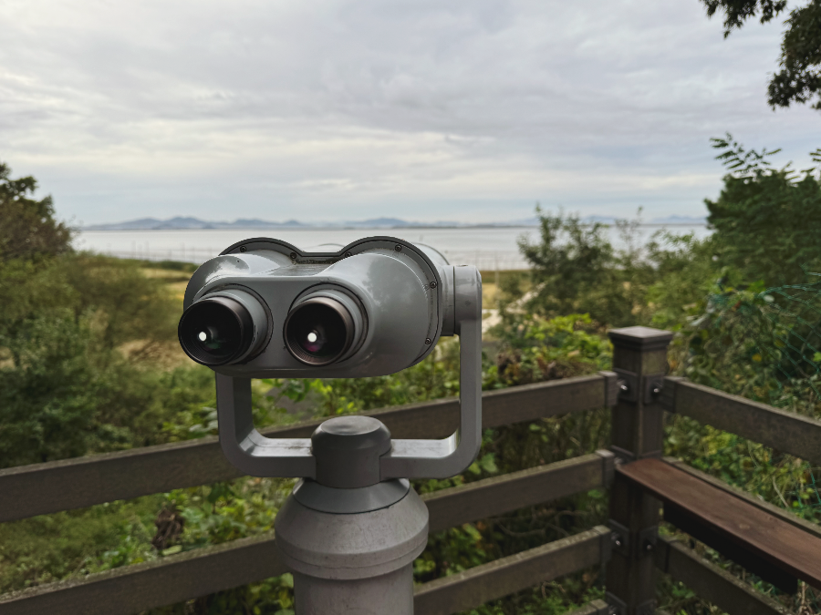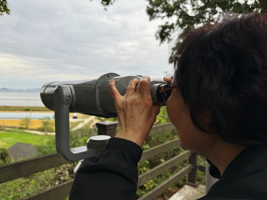 망향대에는 망원경이 2대가 있습니다. 이제껏 돈을 넣어야 보이는 망원경을 많이 보았던지라.. 이것도 동전을 넣는 건가 싶었는데.. 그냥 잘 보입니다 :-) 망원경으로 건너편을 들여다보았는데요. 자세하게 보이지는 않지만 사람들이 뭔가를 하는 모습이 보였답니다. 벼를 들어서 옮기는 것 같았어요. 바다 건너 저편은 연백평야라고 합니다. 아마도 열심히 추수를 하는 중인 것 같습니다.