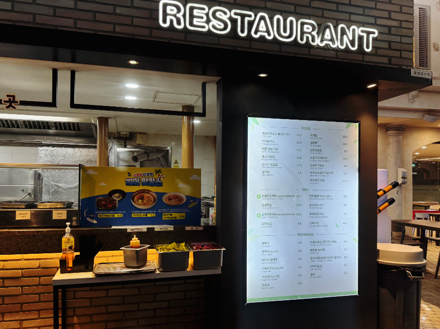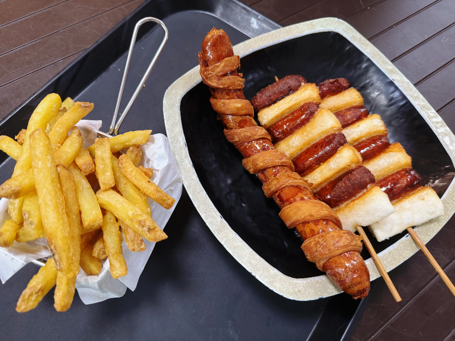 실내 스파 한쪽에는 푸드코트처럼 음식을 시켜 먹을 수 있는 소담상이라는 곳이 있습니다. 입장할 때 받은 2500원 식음할인권을 사용할 수 있습니다. 할인권을 사용하면 합리적인 가격으로 이용할 수 있어 회오리 소세지, 소떡소떡, 감자튀김을 먹었는데요. 감자튀김만 빼고.. 가격대비 괜찮았답니다.