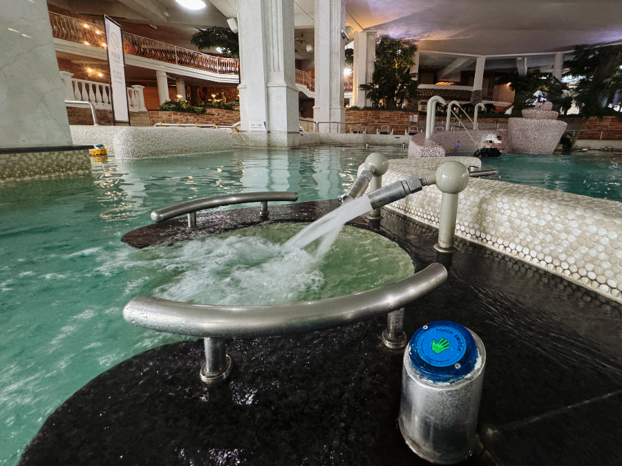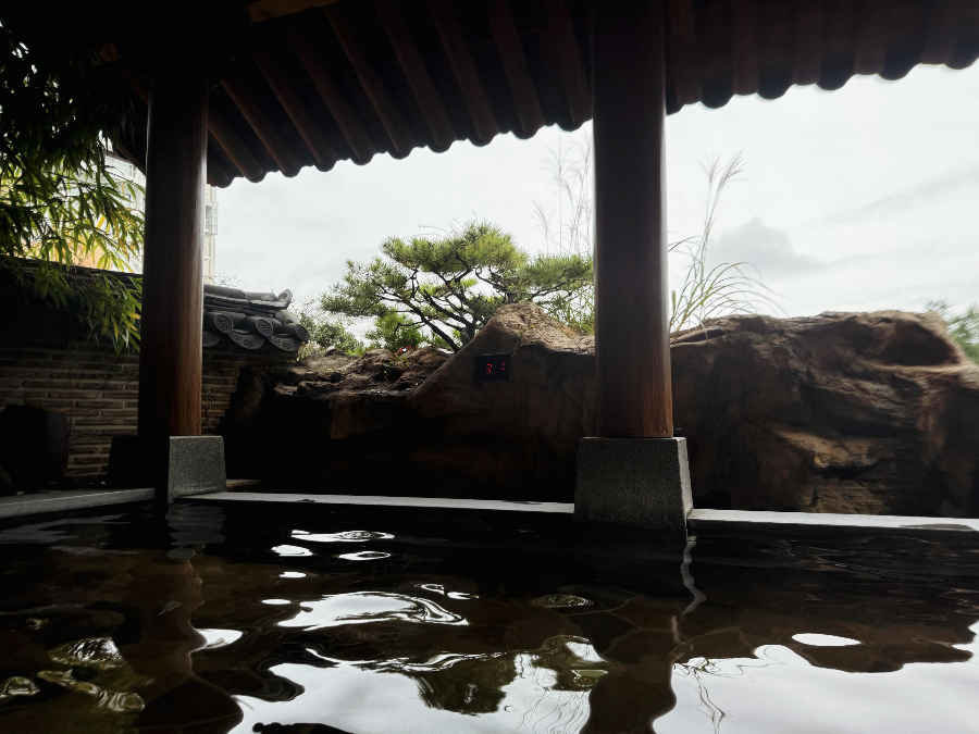 덕산 온천수가 흐르는 스플라스 리솜은 국가 보양온천으로 지정되어 있는 곳입니다. 보양온천은 행정안전부가 승인한 온천으로 물의 온도와 성분뿐만 아니라 주변환경, 건강증진, 심신요양에 적합한 곳인지 여러 가지 까다로운 기준을 충족해야 인증이 된다고 합니다. 파라다이스 도고 온천도 보양온천으로 지정되어 있어 두 곳 중 어디로 갈지 고민하다가 스플라스 물 온도가 더 따뜻하다고 하는 후기를 보고 스플라스로 가기로 했답니다. 방문한 날은 오전에 비가 오고 그친 직후여서 날이 흐려서 춥지 않을까 걱정했는데 물이 따뜻해서 괜찮았습니다.