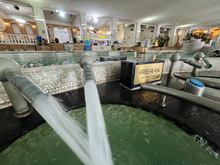 실내 스파에는 바데풀 속에 파노라마젯, 넥샤워, 사이드넥 샤워, 릴랙스 버블 등 다양한 마사지 존이 있습니다. 파란색 버튼을 손으로 터치하면 물이 나오면서 마사지를 할 수 있는 방식인데 작동이 잘 되지 않는 것도 있고 터치가 잘 되지 않는 것도 있어 터치보다 누르는 방식이 더 나을 것 같다는 생각을 했답니다. 다행히 물살은 세고 보글보글 거품도 잘 나와 마사지하기에는 좋았습니다~