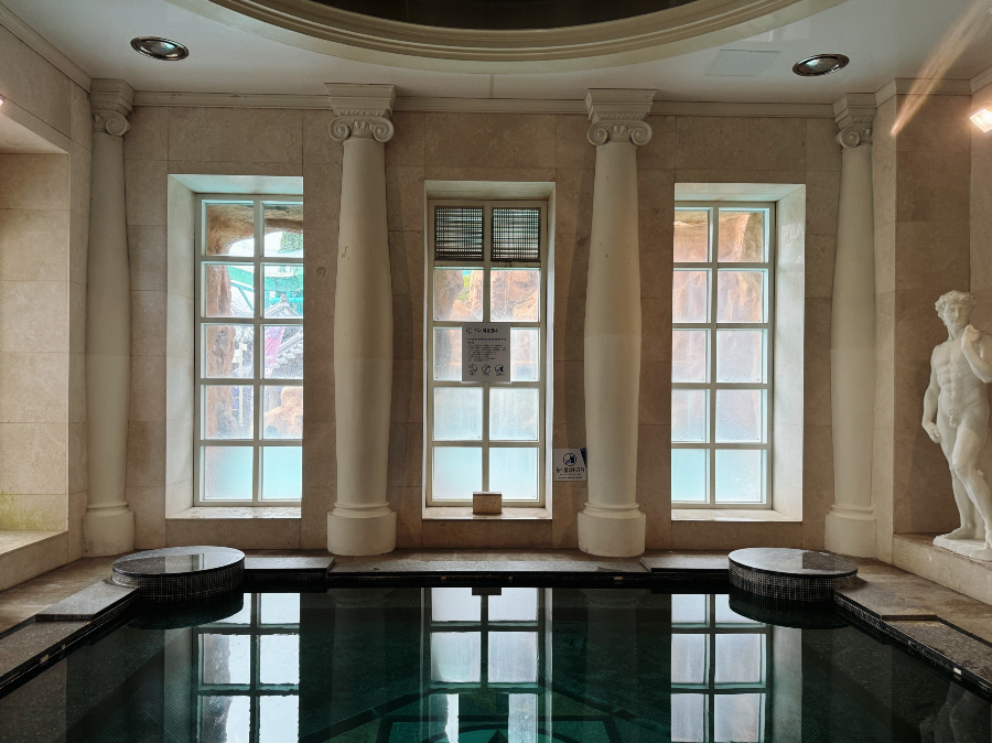 덕산 온천수가 흐르는 스플라스 리솜은 국가 보양온천으로 지정되어 있는 곳입니다. 보양온천은 행정안전부가 승인한 온천으로 물의 온도와 성분뿐만 아니라 주변환경, 건강증진, 심신요양에 적합한 곳인지 여러 가지 까다로운 기준을 충족해야 인증이 된다고 합니다. 파라다이스 도고 온천도 보양온천으로 지정되어 있어 두 곳 중 어디로 갈지 고민하다가 스플라스 물 온도가 더 따뜻하다고 하는 후기를 보고 스플라스로 가기로 했답니다. 방문한 날은 오전에 비가 오고 그친 직후여서 날이 흐려서 춥지 않을까 걱정했는데 물이 따뜻해서 괜찮았습니다.